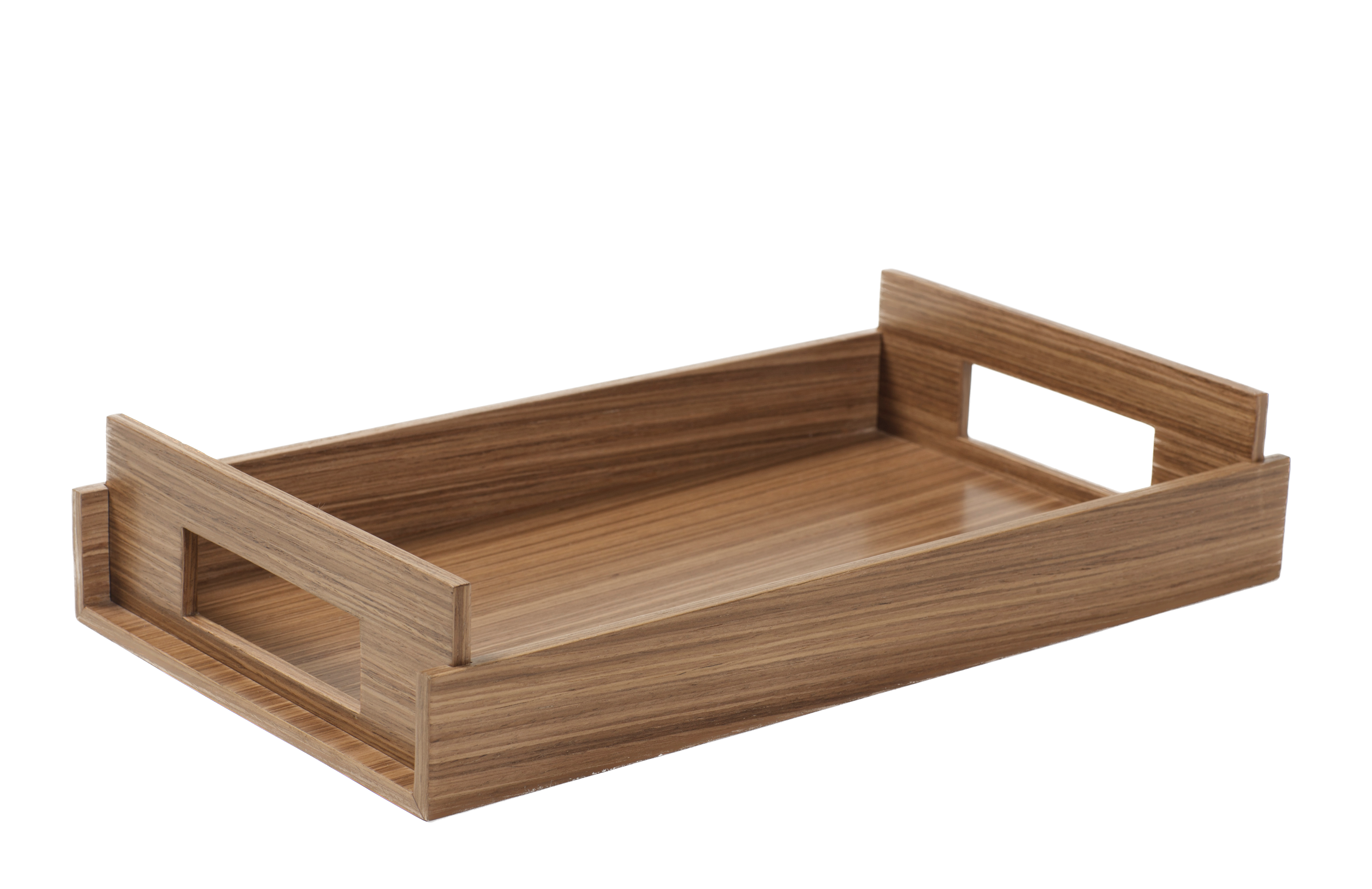 Luxurious wood finish. These trays are easy to lift, handles on either end, and light in weight. Available in three sizes.