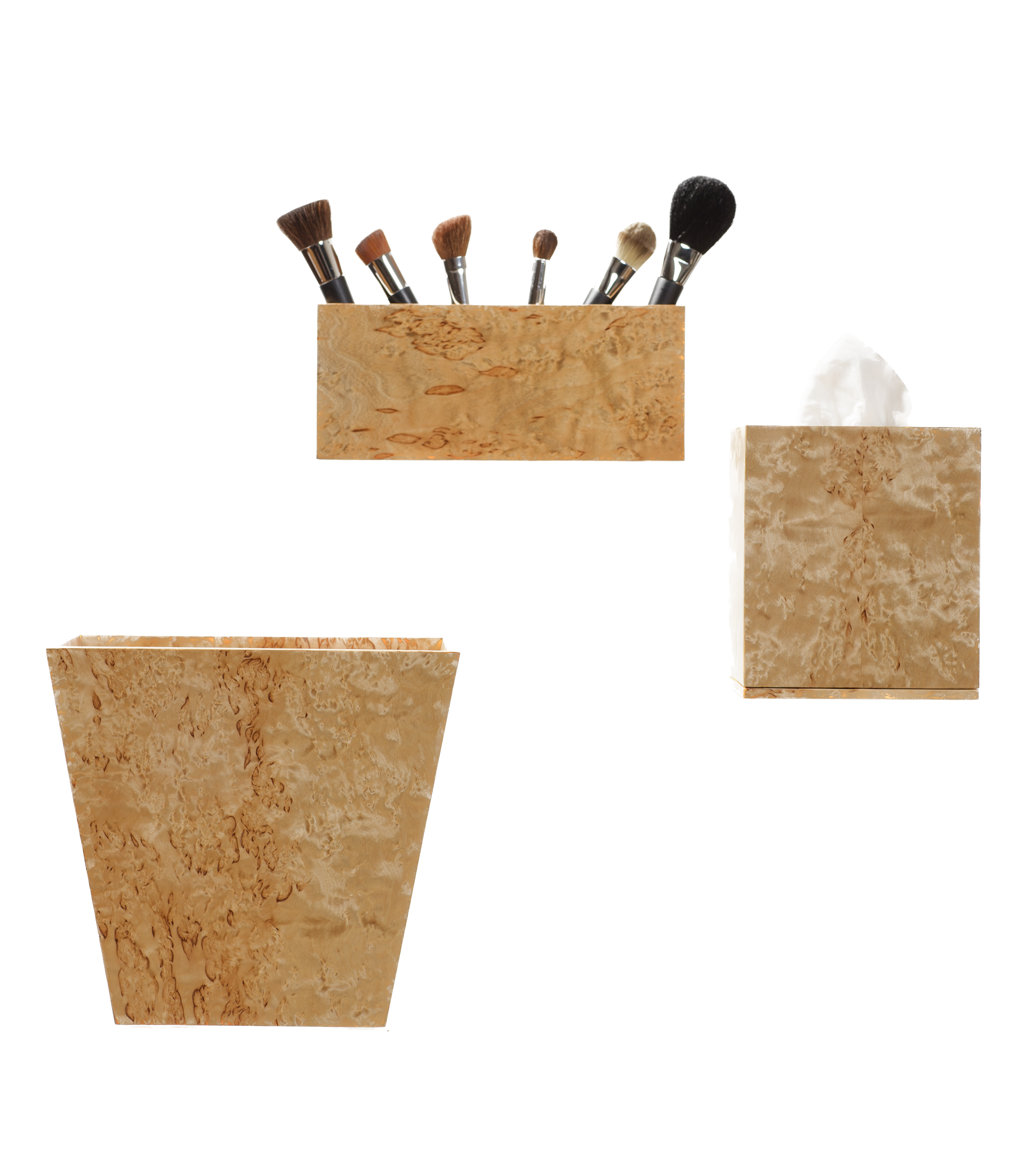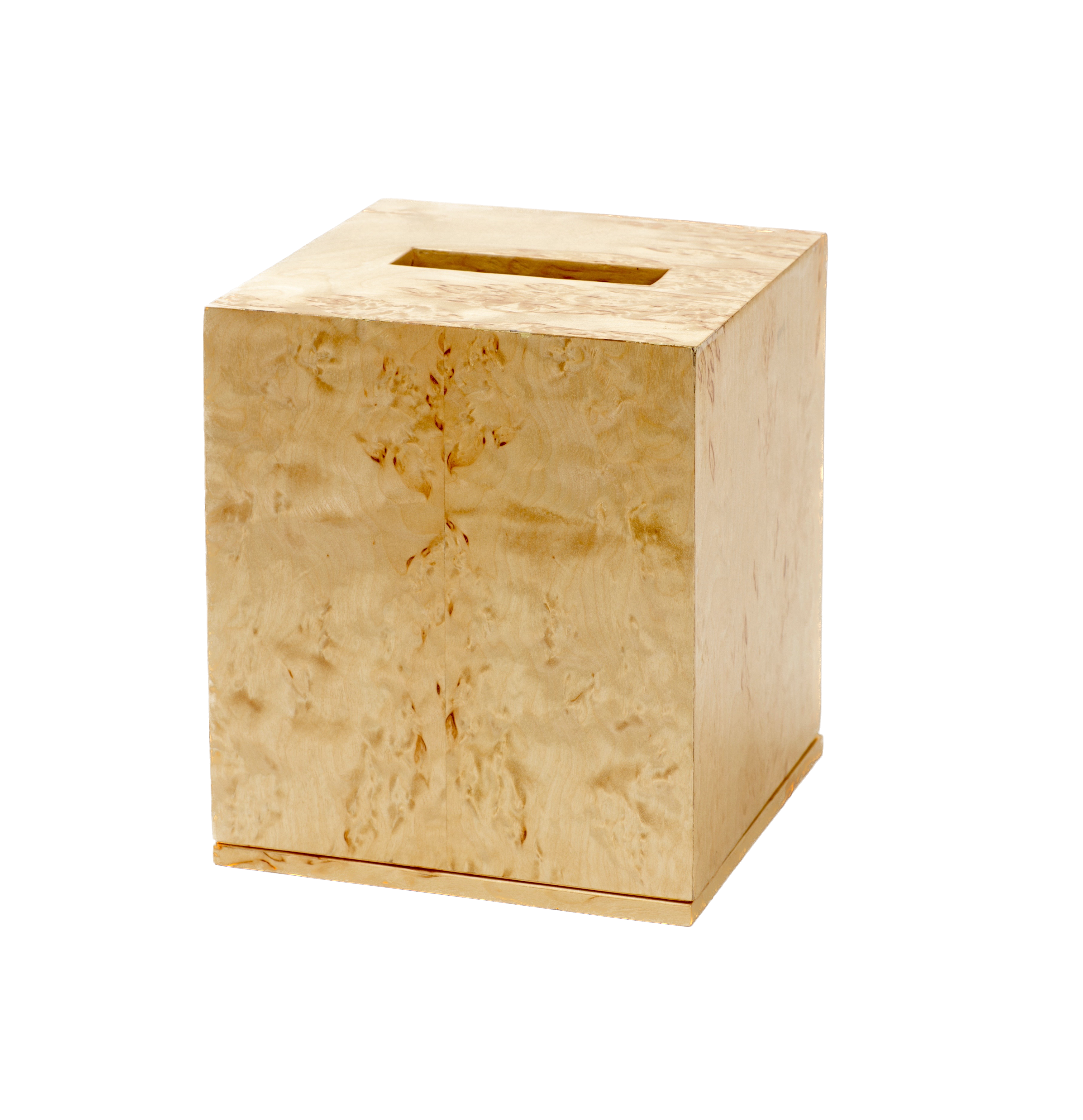 The Boutique Tissue Box in Karelian Birch wood is a beautifully crafted piece that combines luxurious design with thoughtful functionality. The square shape is sleek and modern and fits most standard-sized tissue boxes.