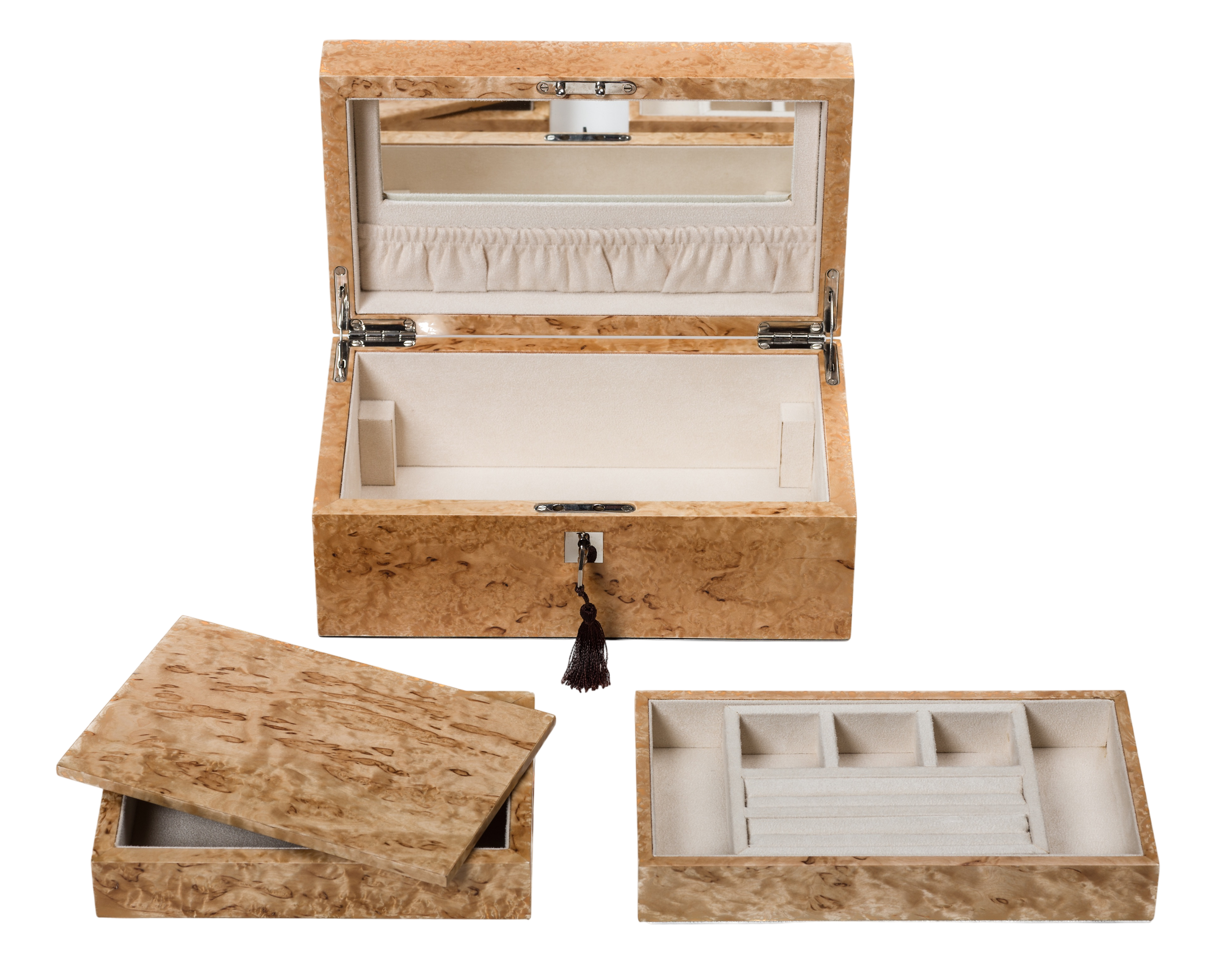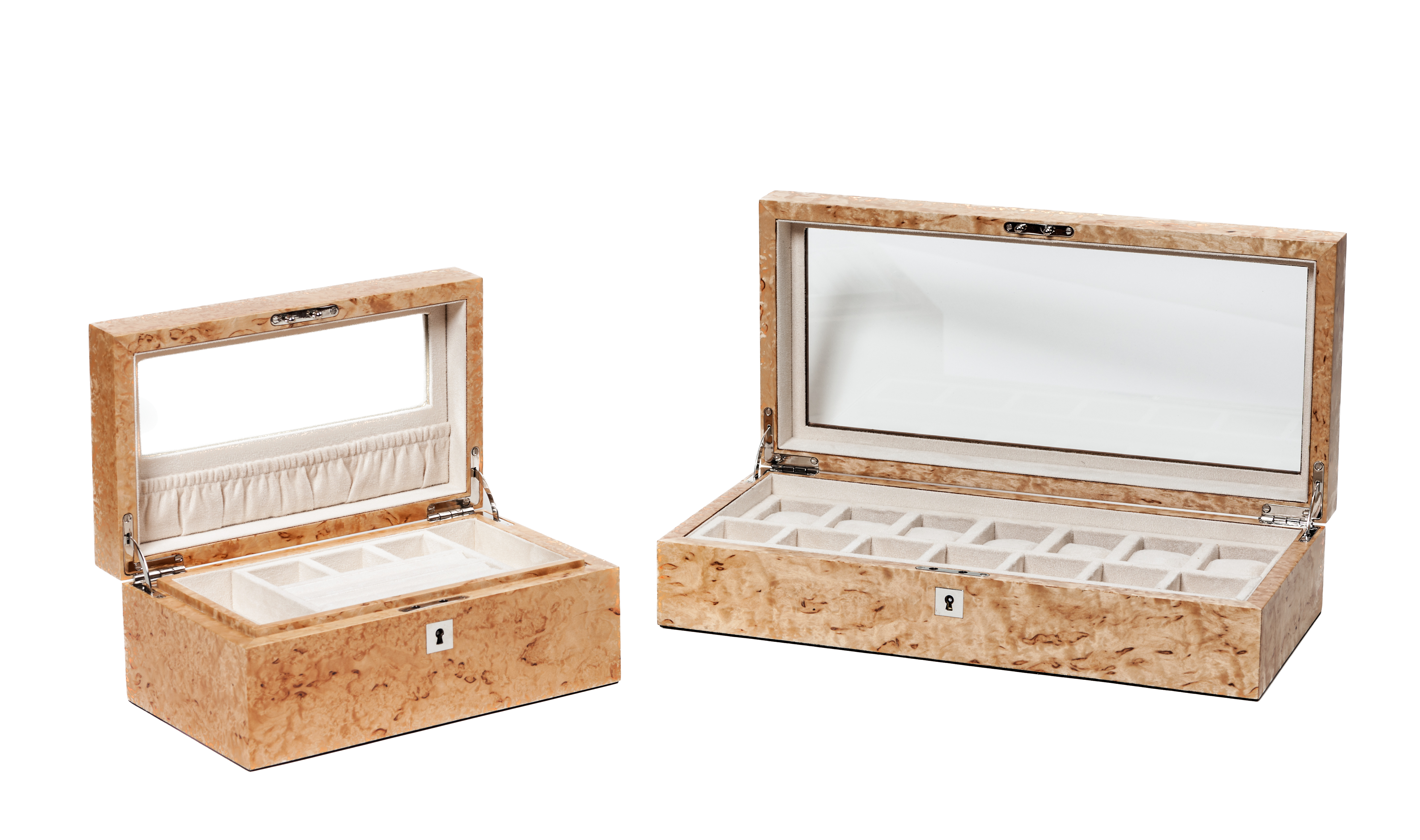 A stunning Karelian Birch luxury jewellery box by iWOODESIGN Exclusive Creations.