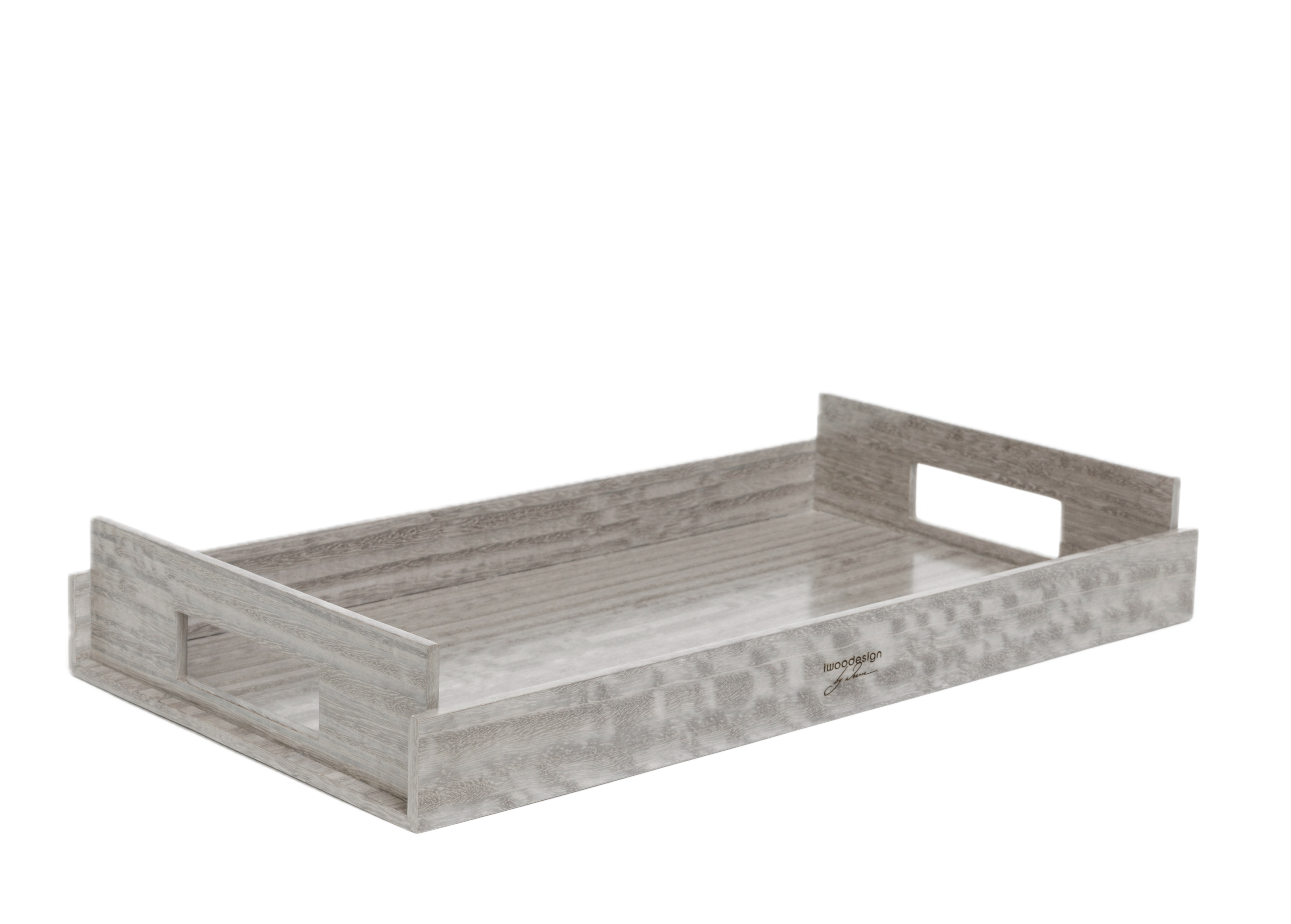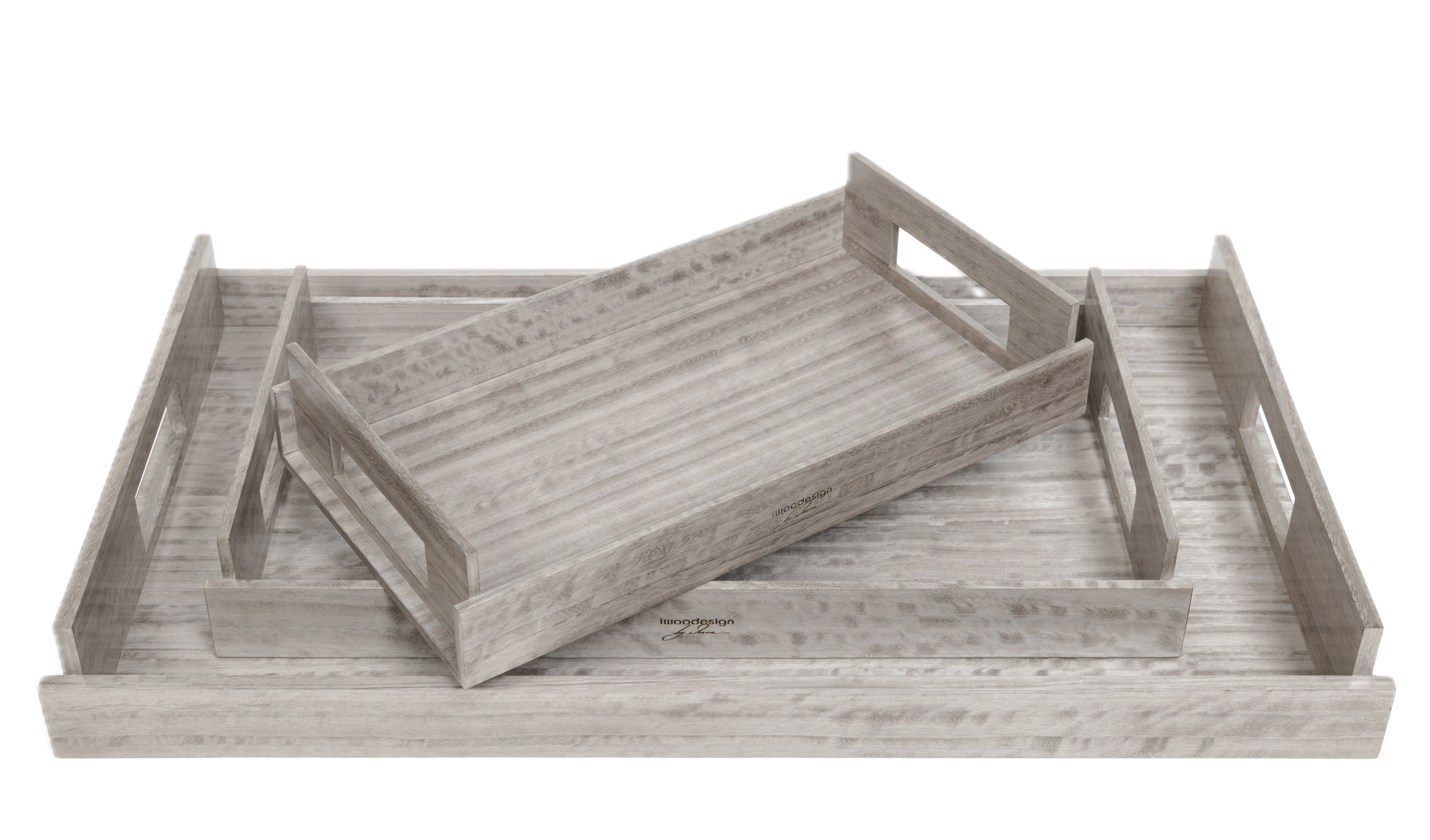 Luxurious wood finish. These trays are easy to lift, handles on either end, and light in weight. Available in three sizes.