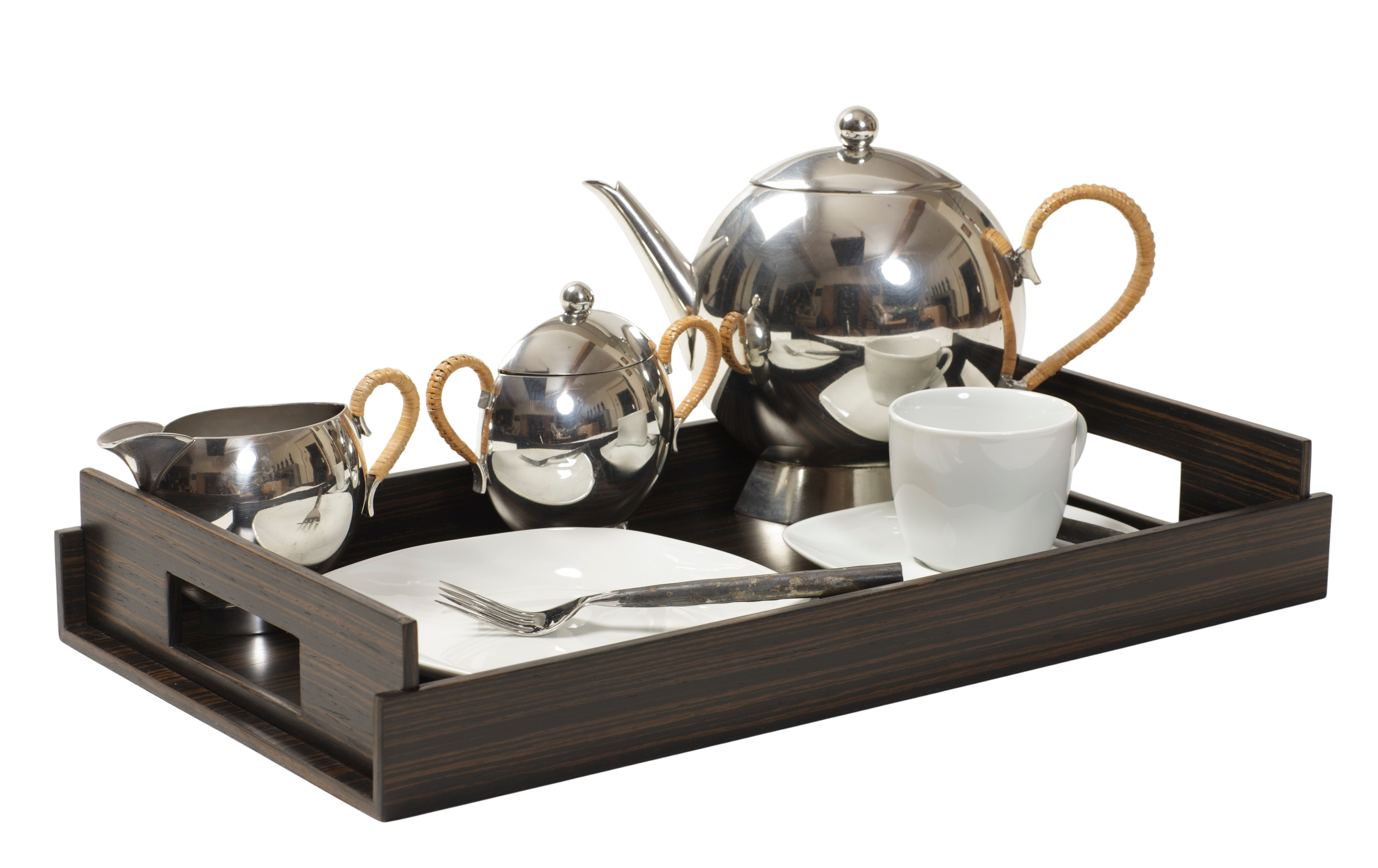 Luxurious wood finish. These trays are easy to lift, handles on either end, and light in weight. Available in three sizes.