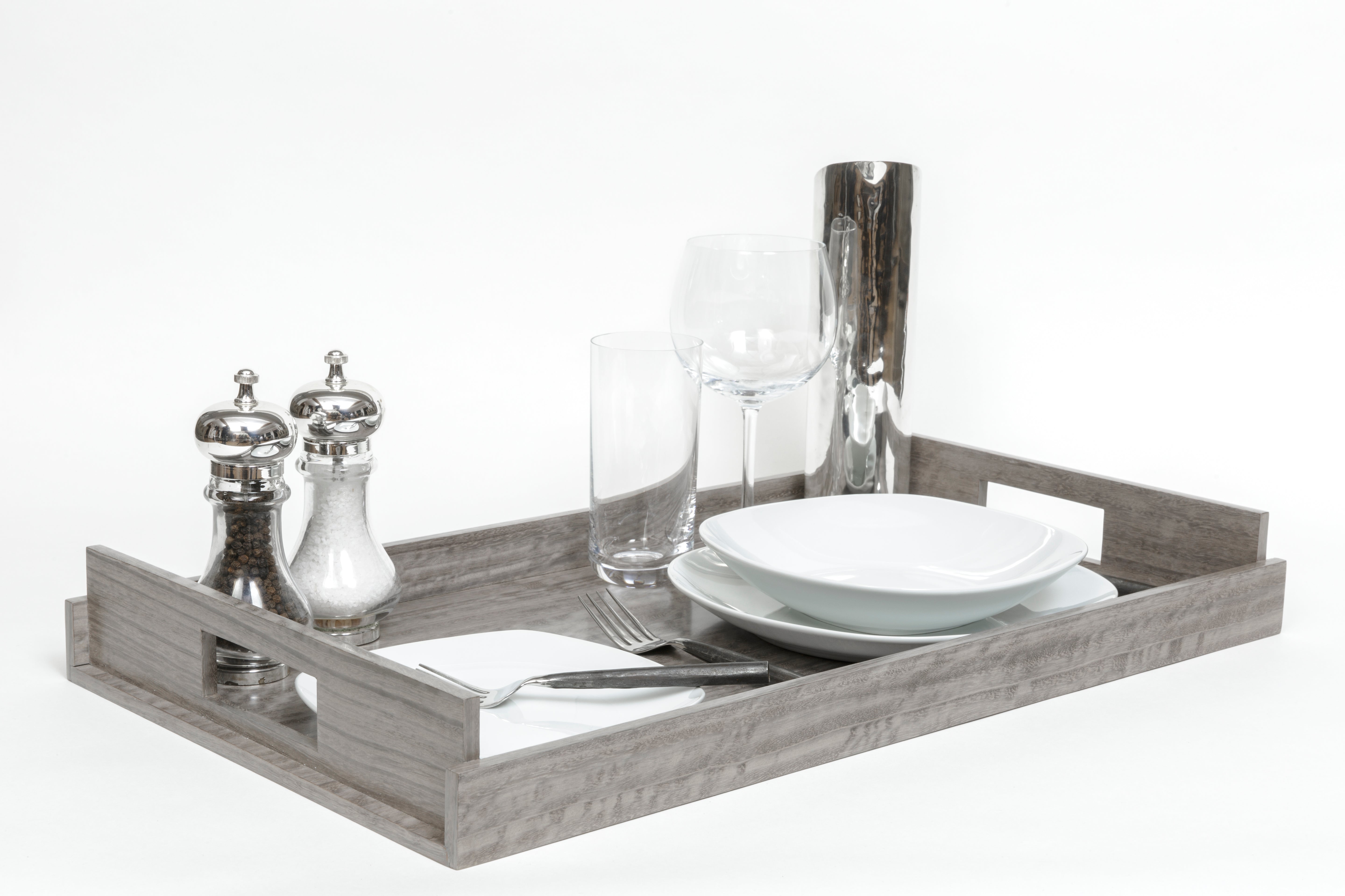 Stunning luxury trays, contemporary in design and versatile. Elegant and forever useful in any room. Luxurious wood finish. These trays are easy to lift, handles on either end, and light in weight.