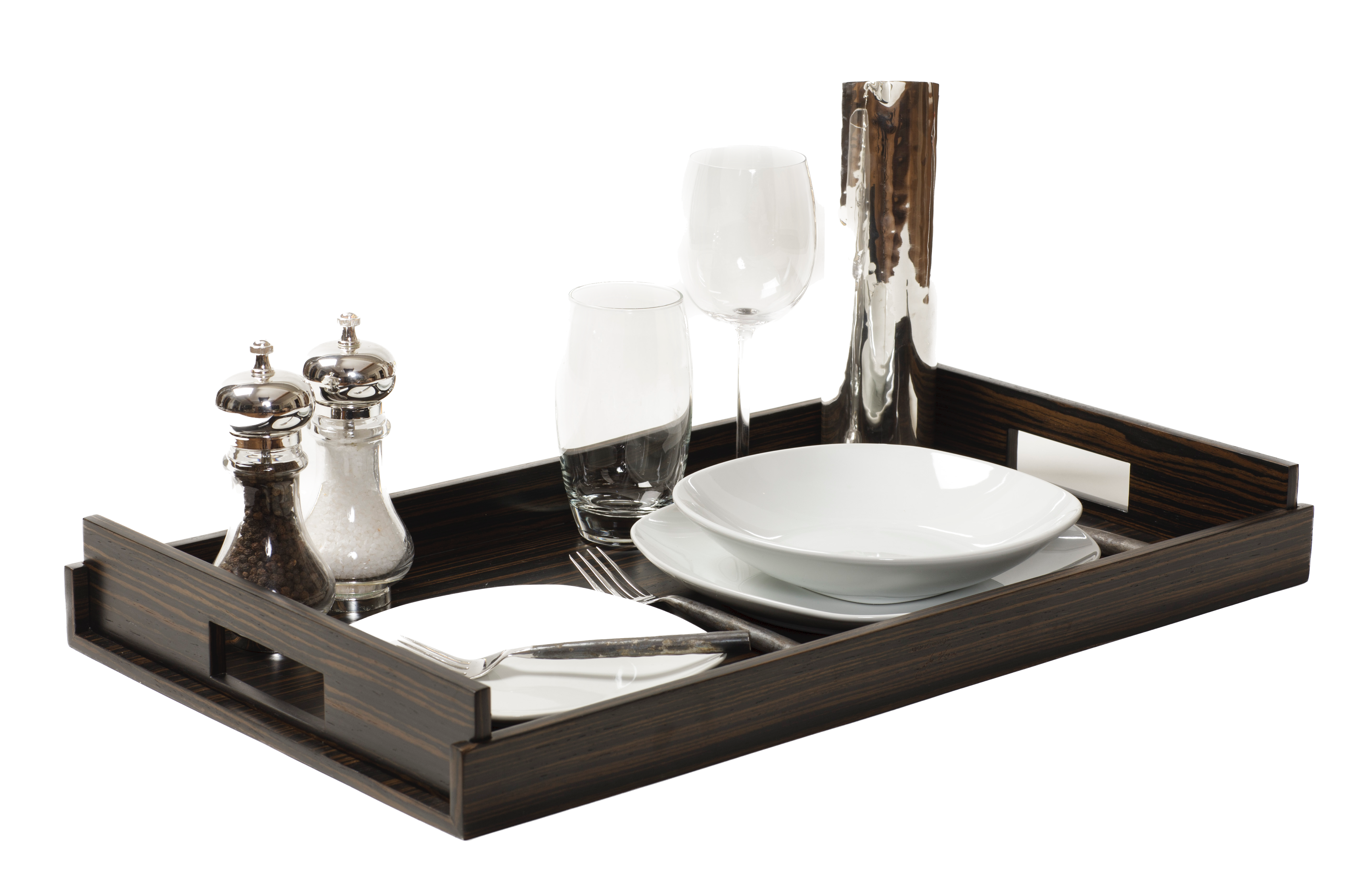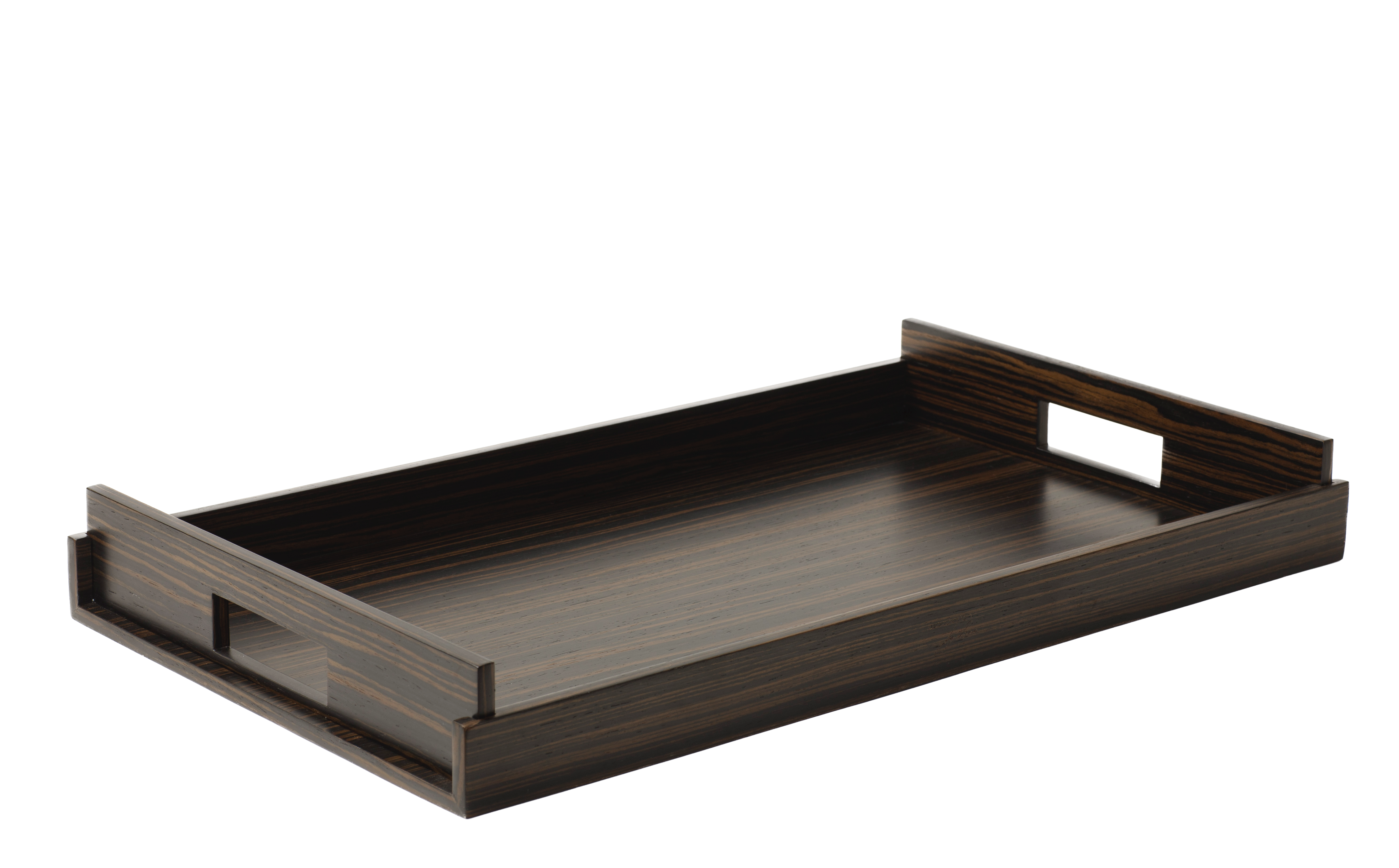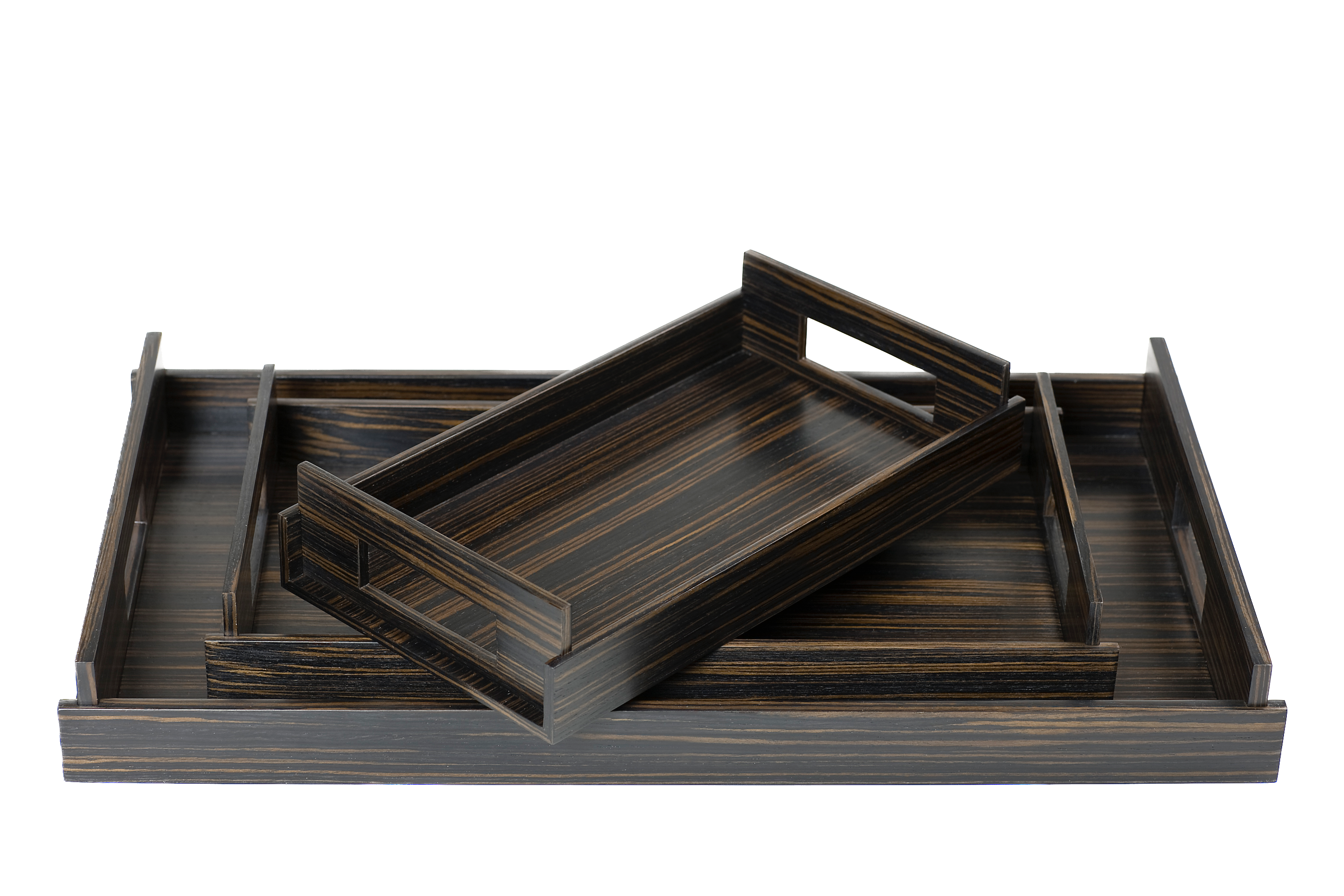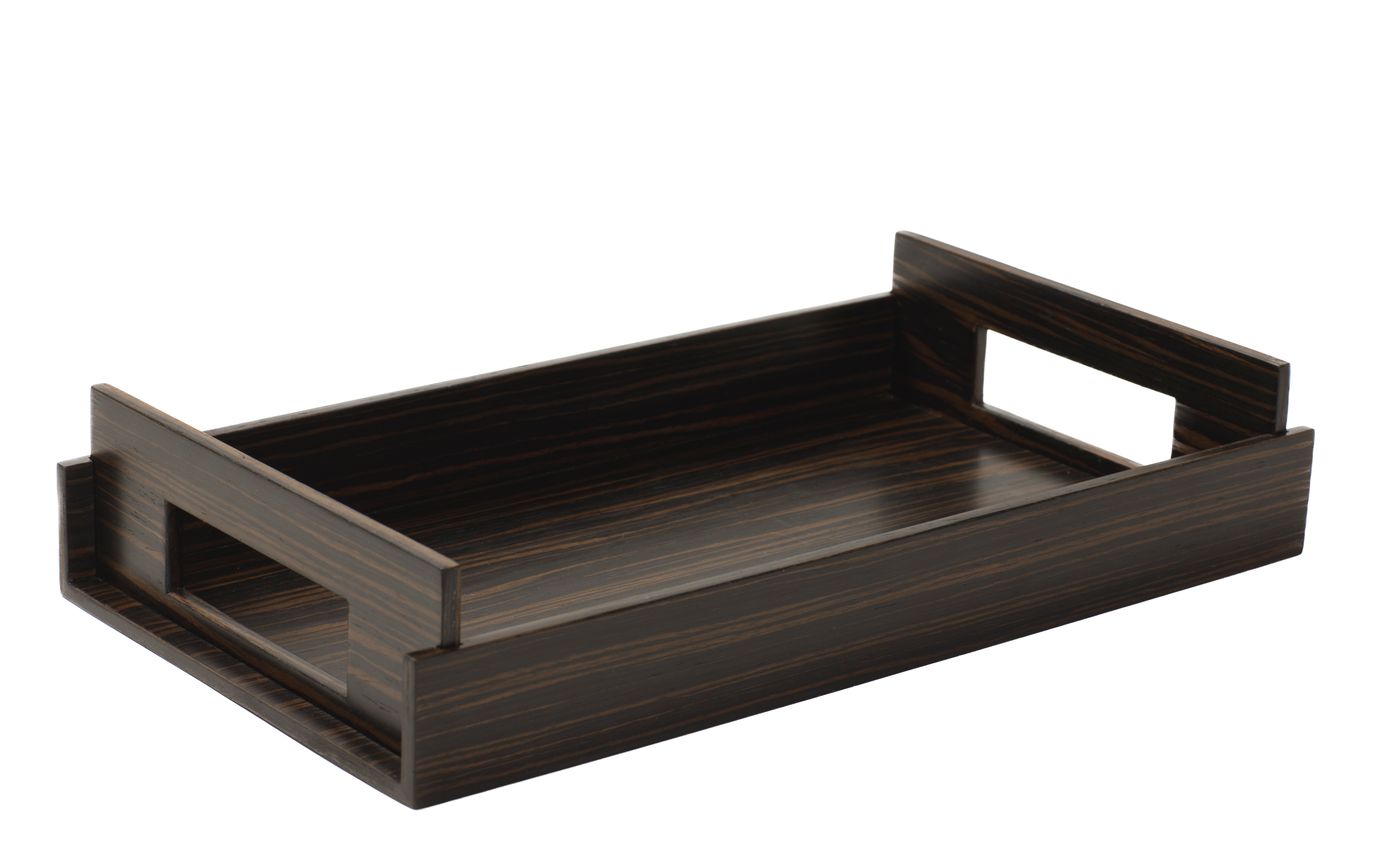 Stunning luxury trays, contemporary in design and versatile.Elegant and forever useful in any room.Luxurious wood finish. These trays are easy to lift, handles on either end, and light in weight.