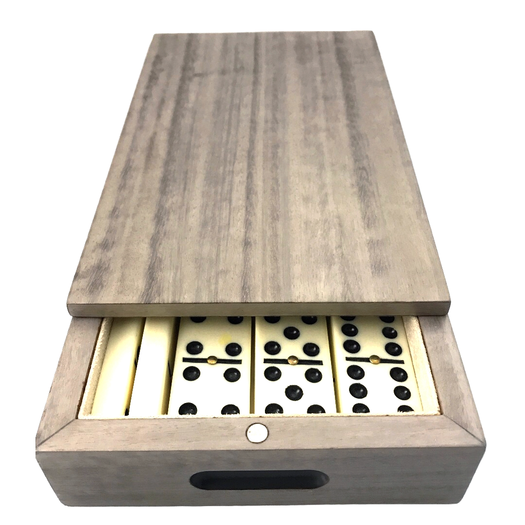 This luxury Dominoes Set is handcrafted in a stunning Sterling Grey Box.