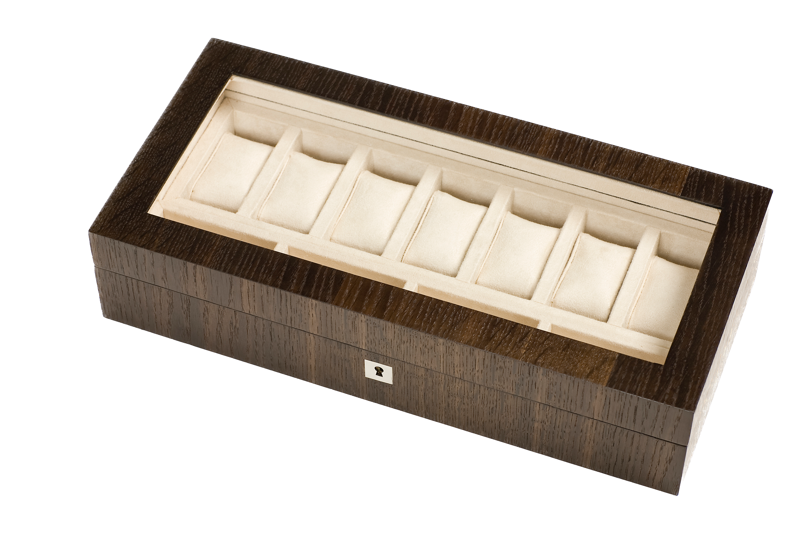 A stunning Smoked Oak luxury watch box for displaying and storing seven watches.
